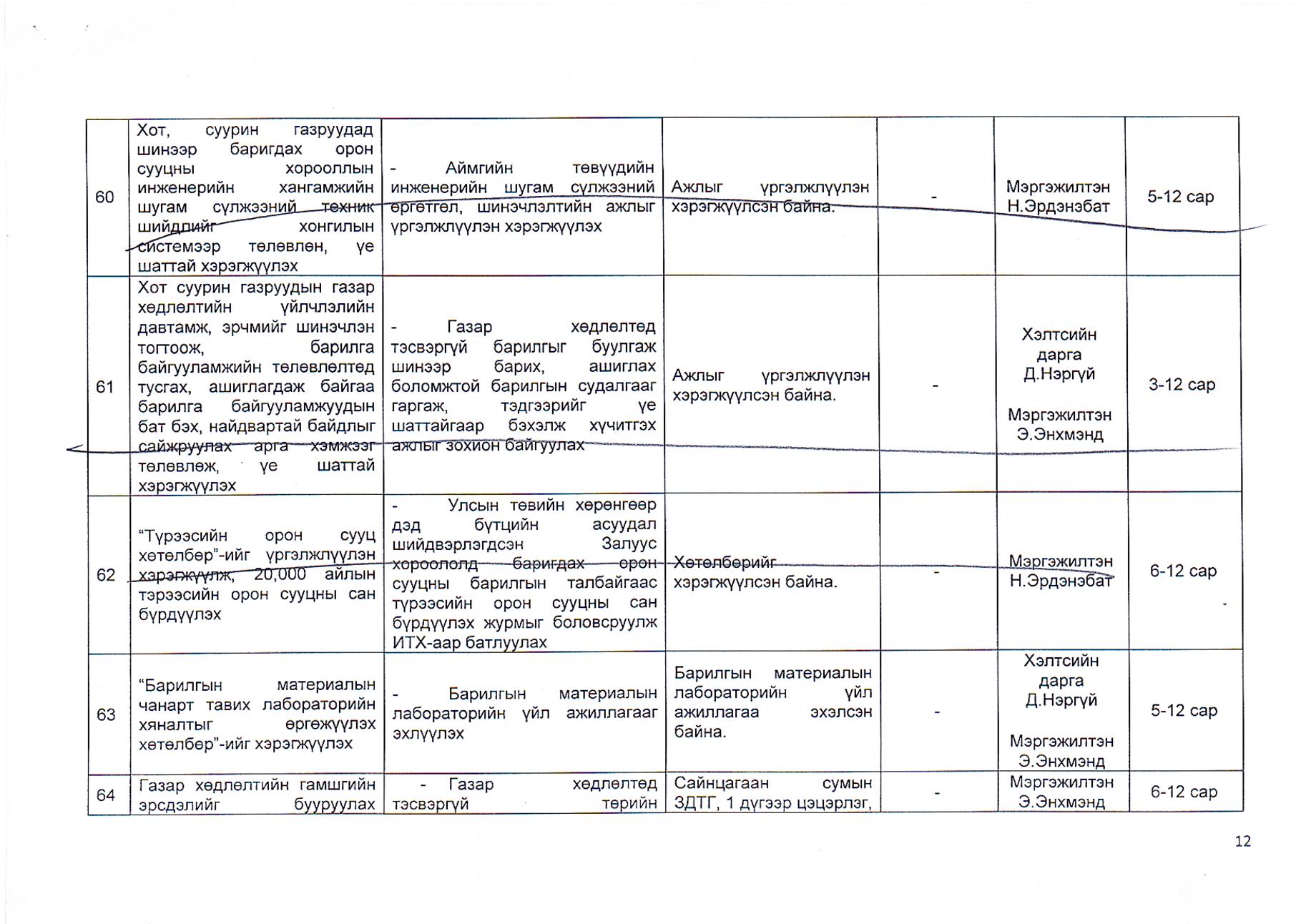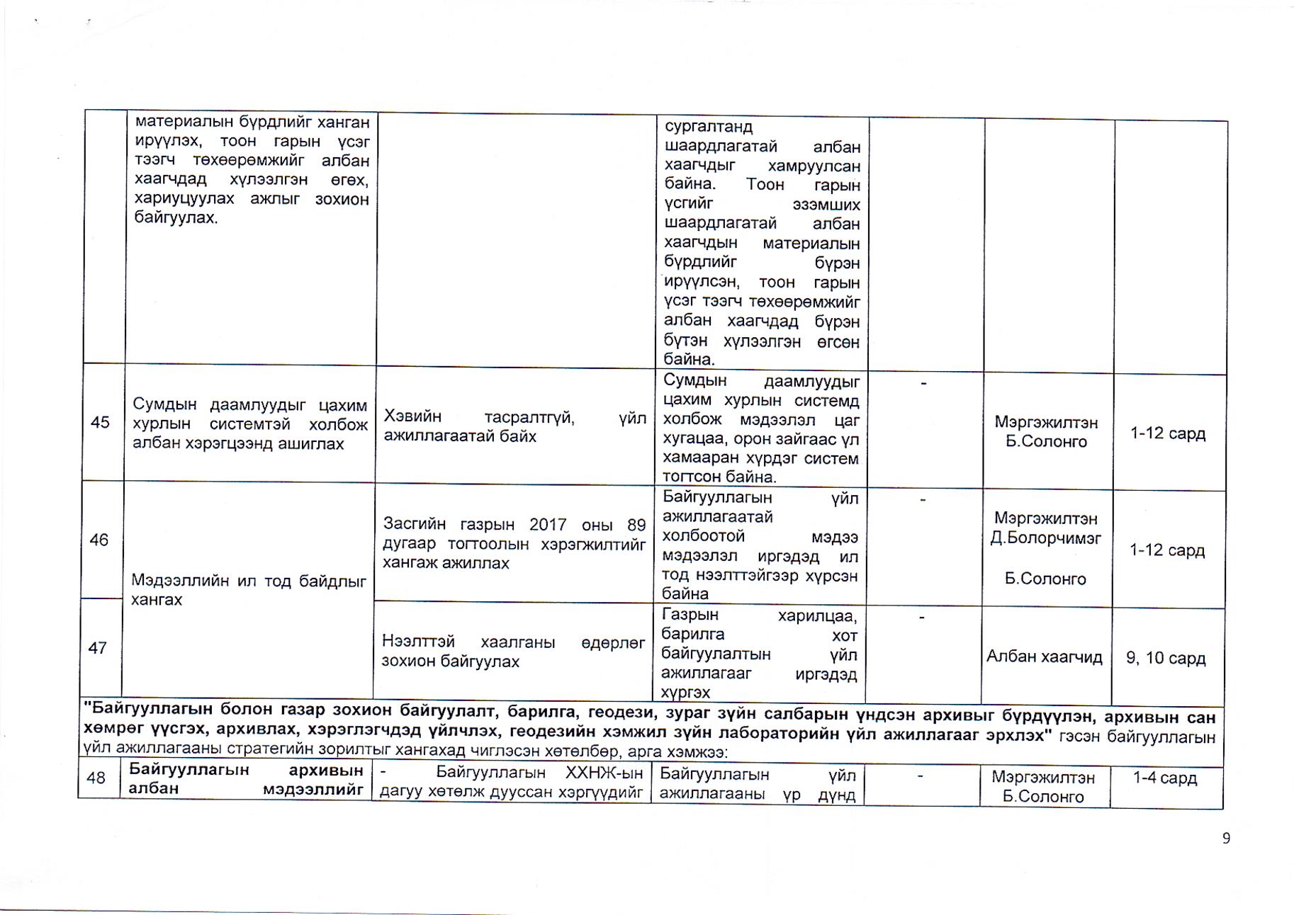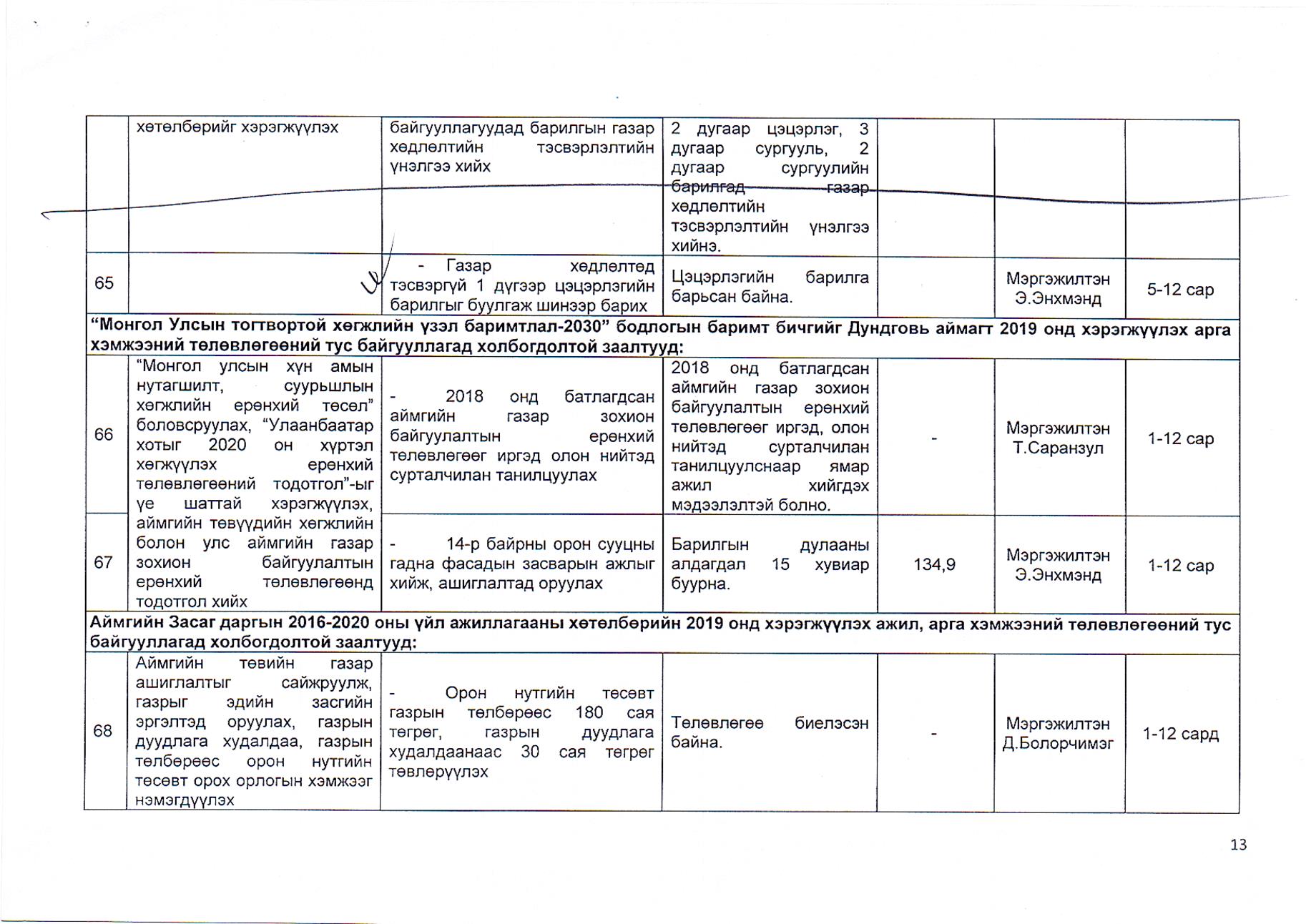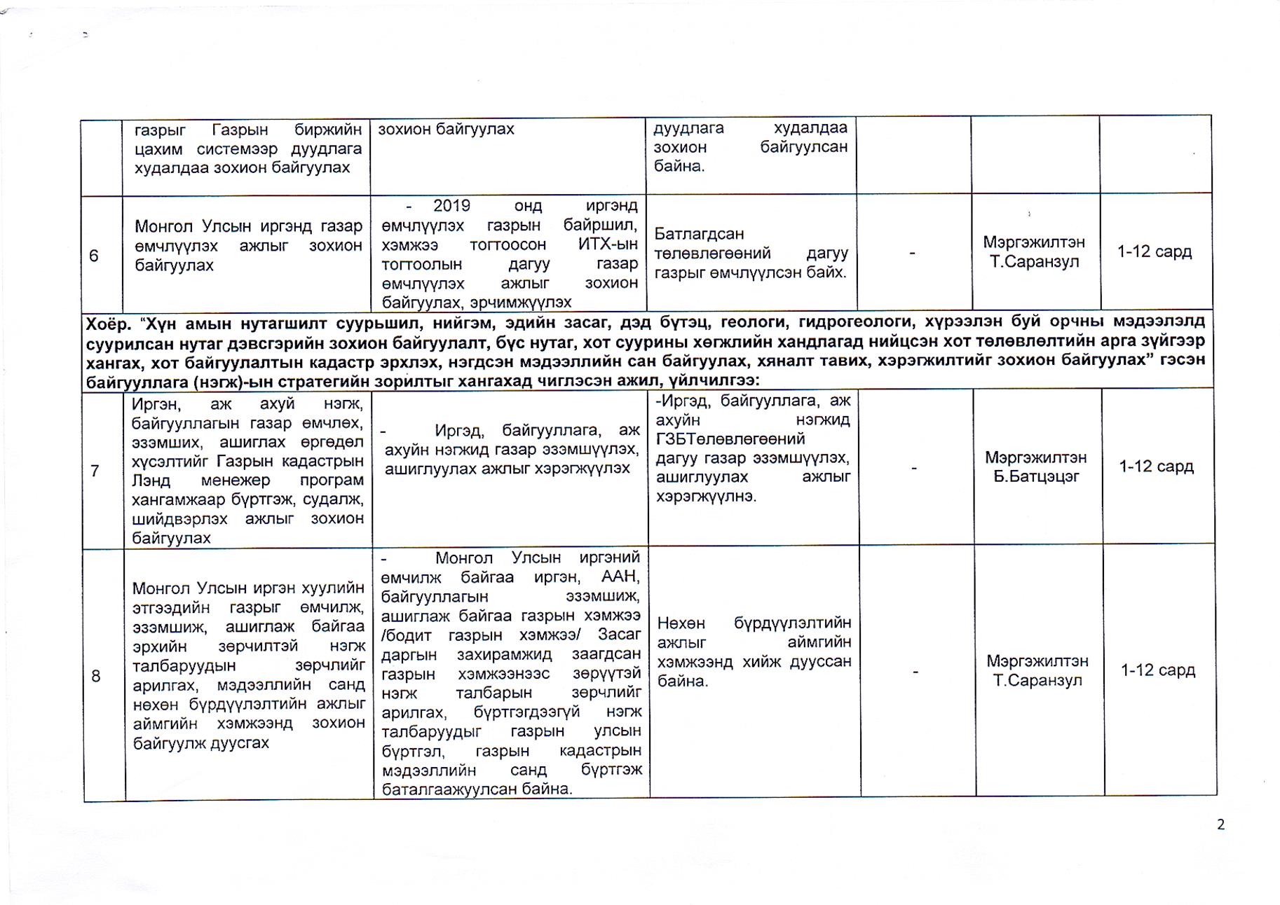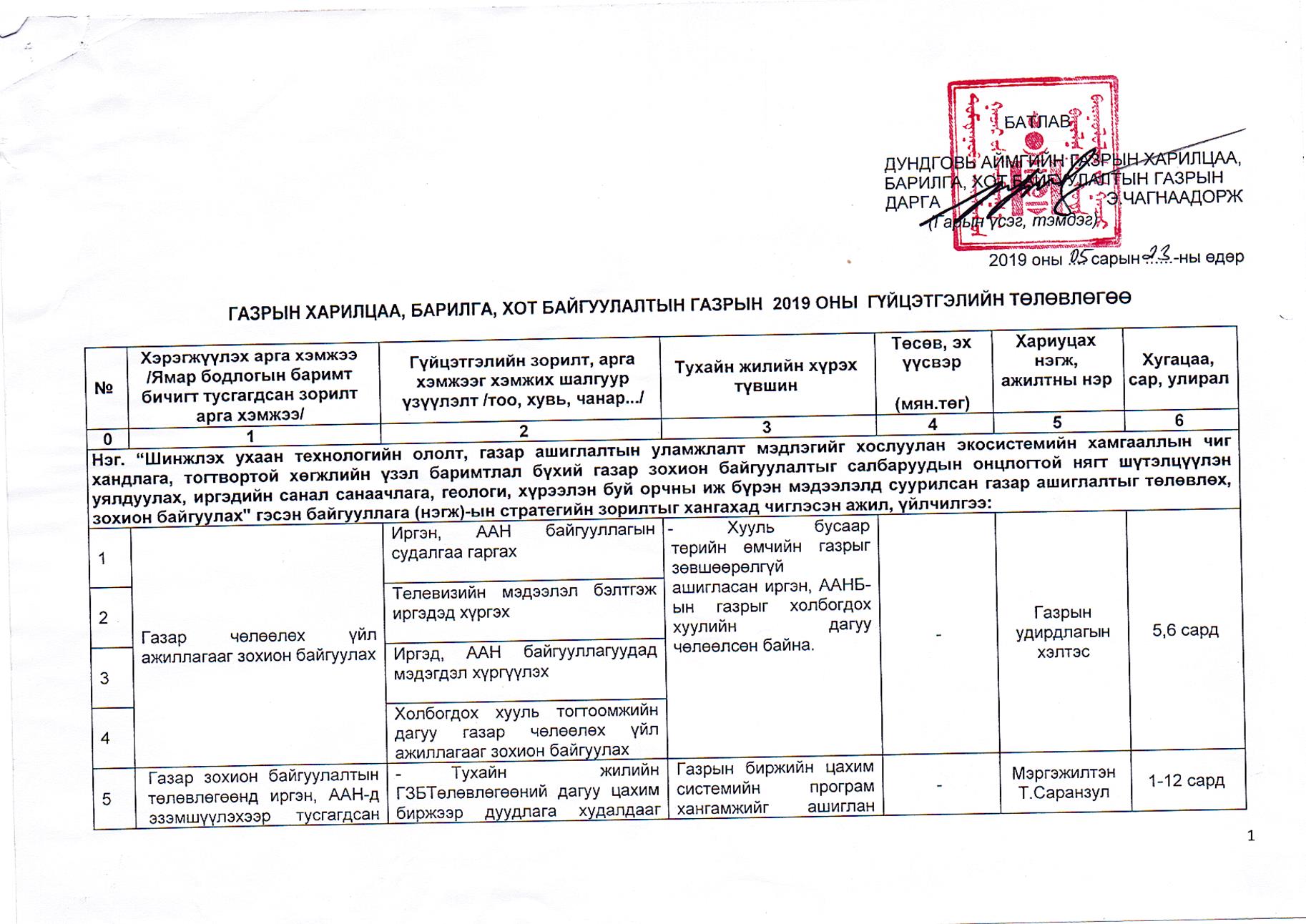 Газрын харилцаа, барилга, хот байгуулалтын газрын 2019 оны гүйцэтгэлийн төлөвлөгөө