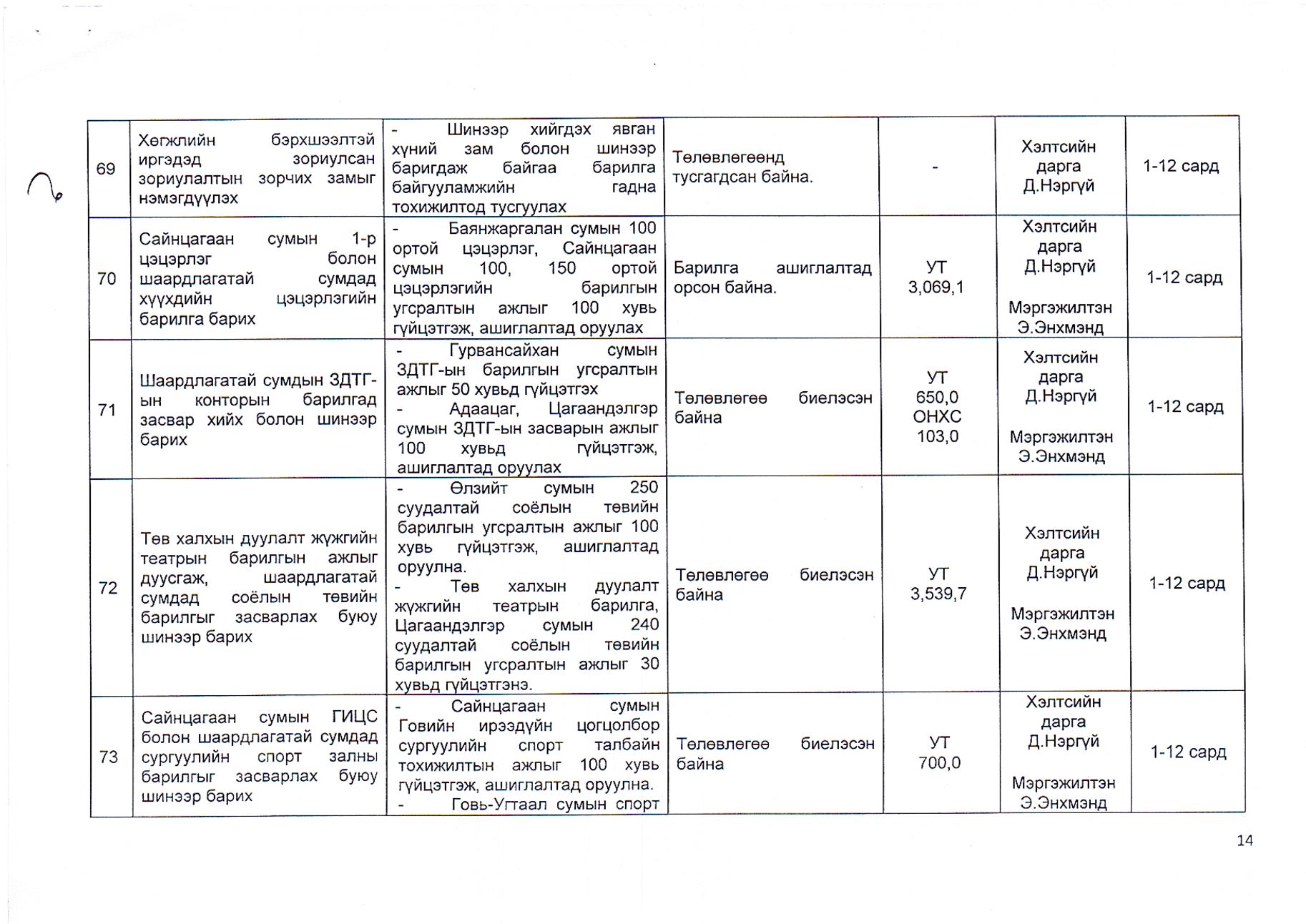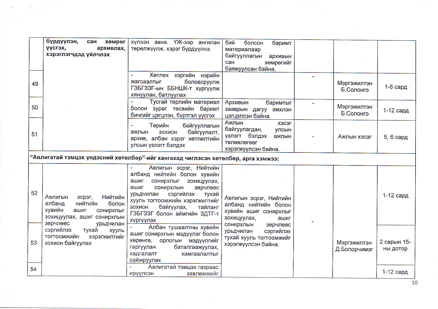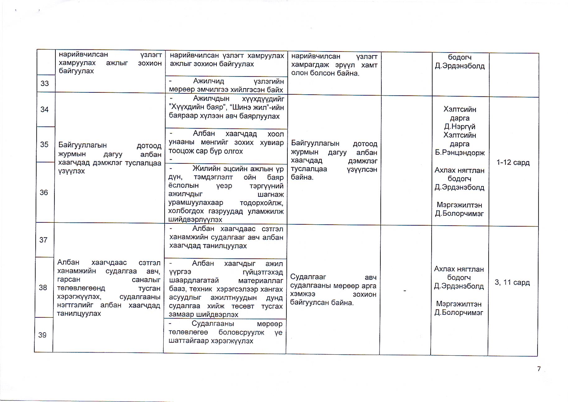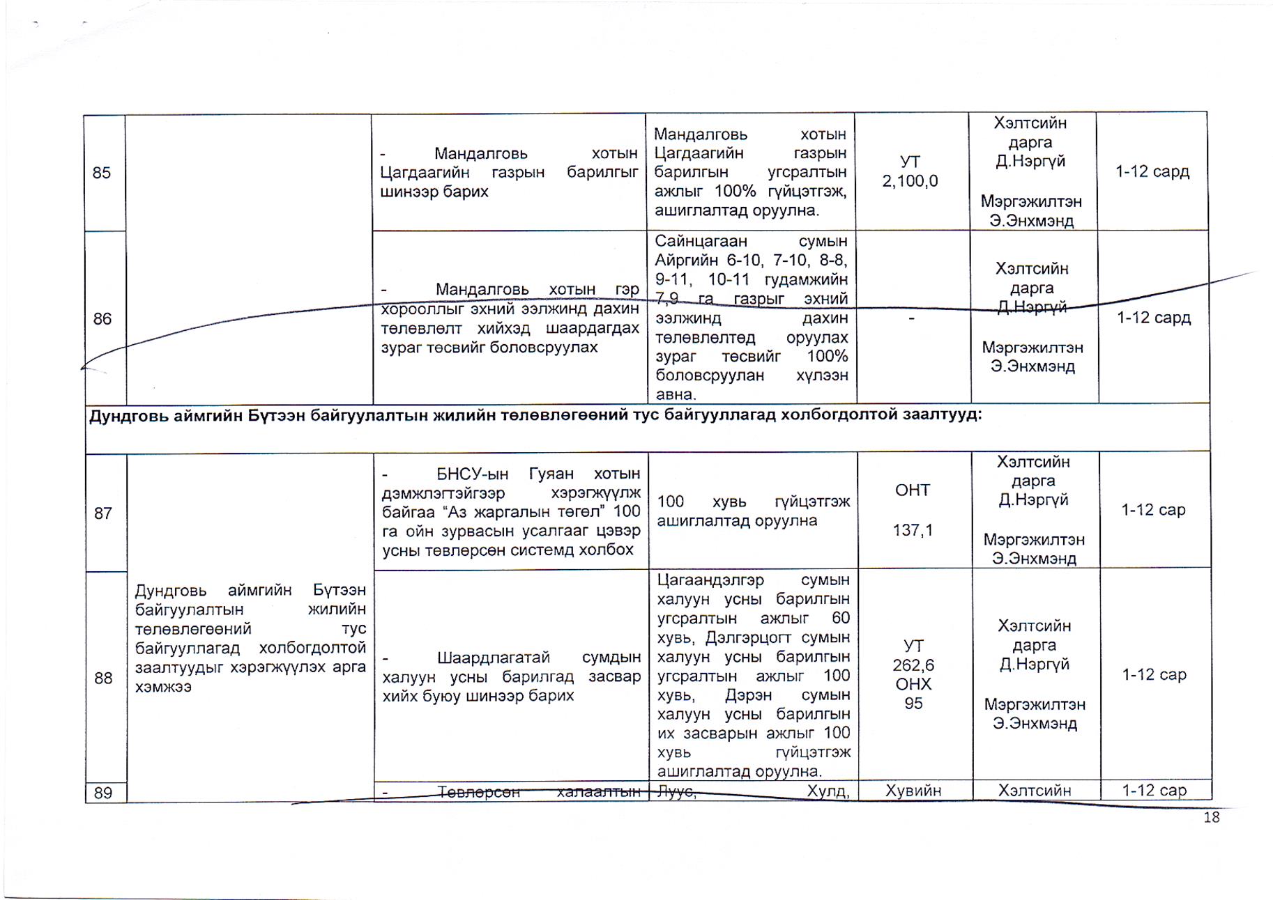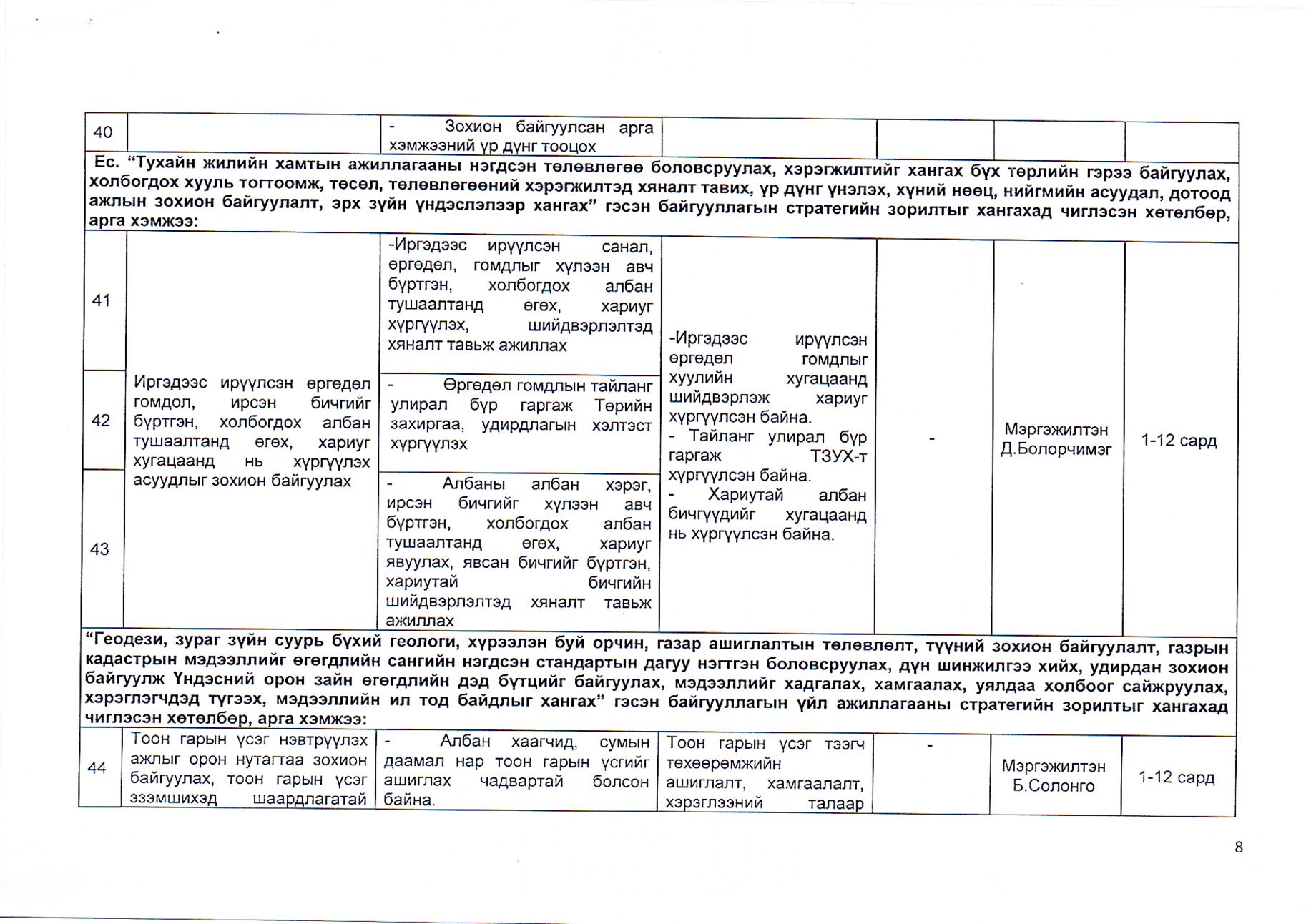 Газрын харилцаа, барилга, хот байгуулалтын газрын 2019 оны гүйцэтгэлийн төлөвлөгөө