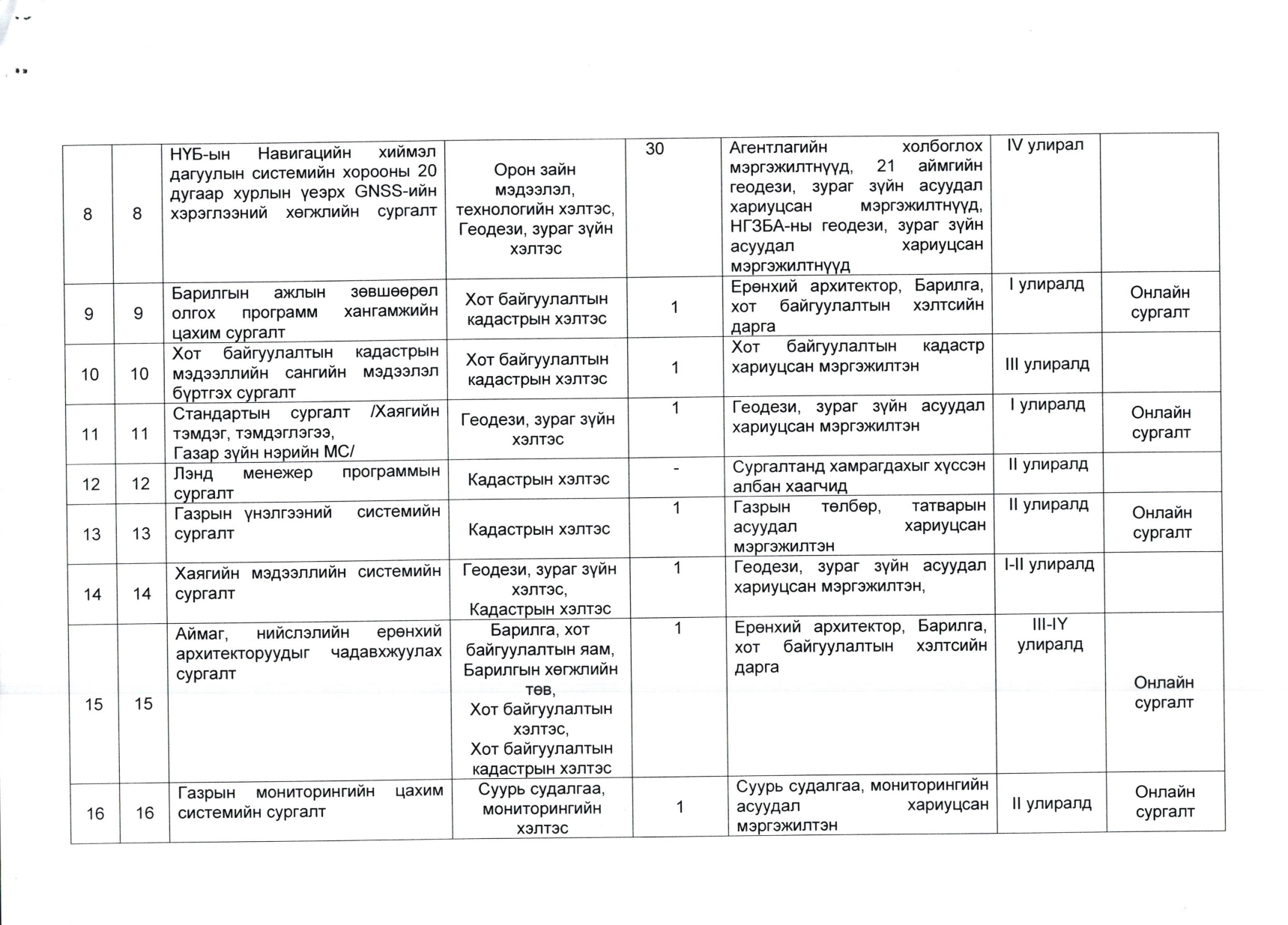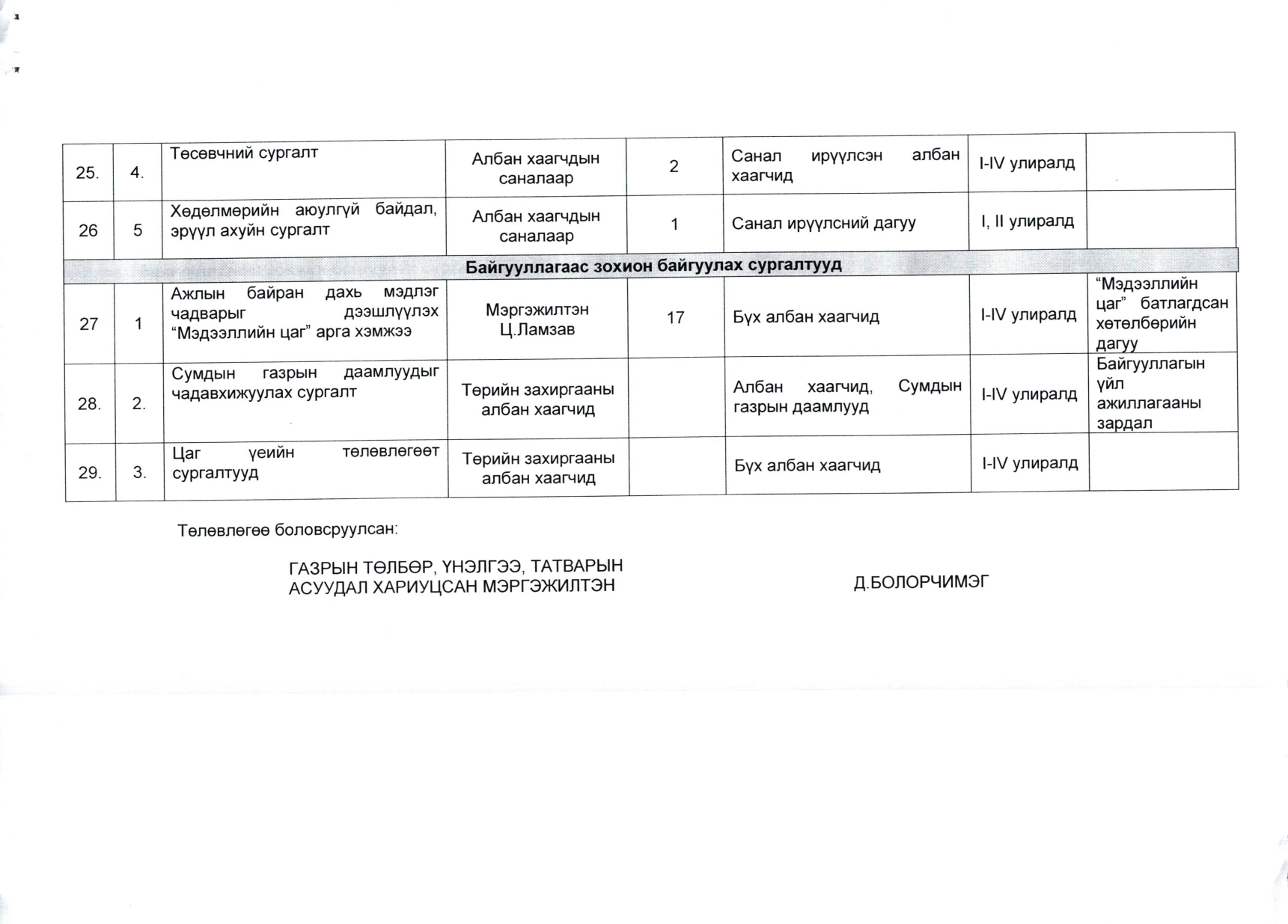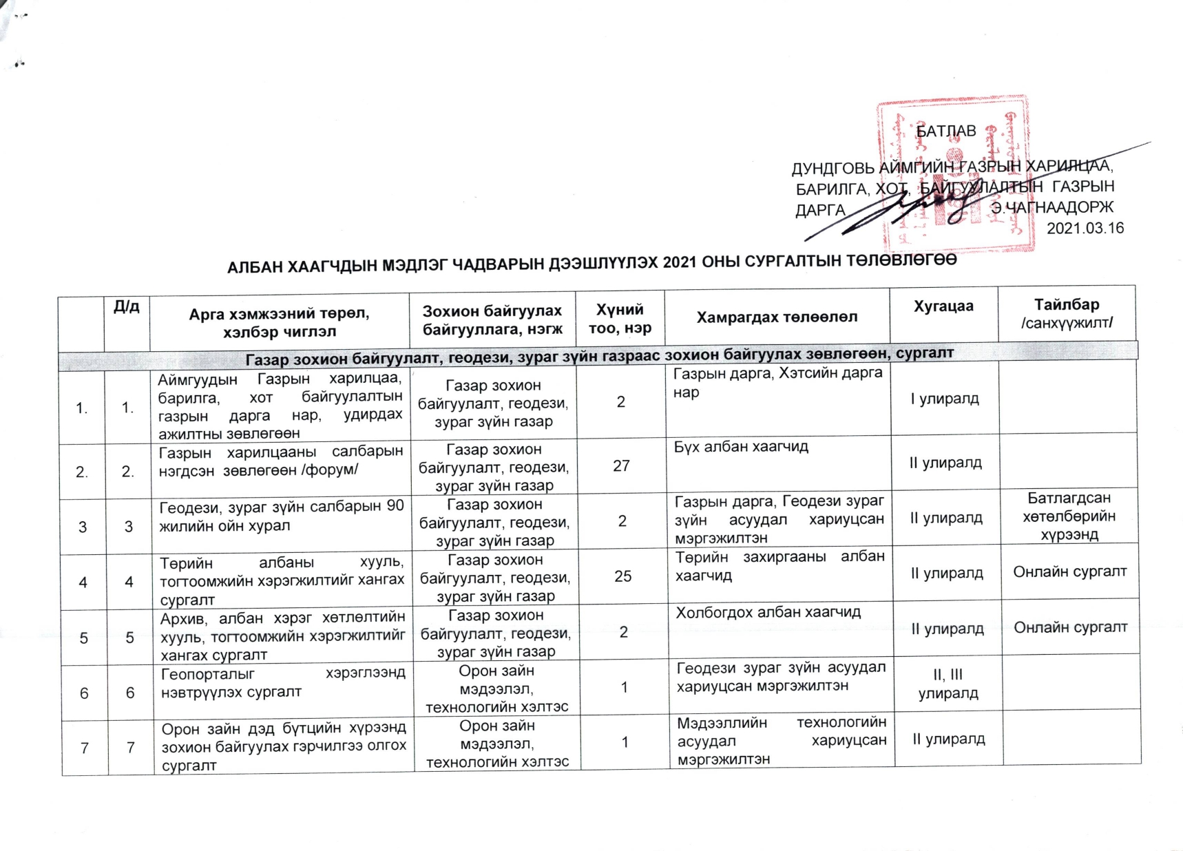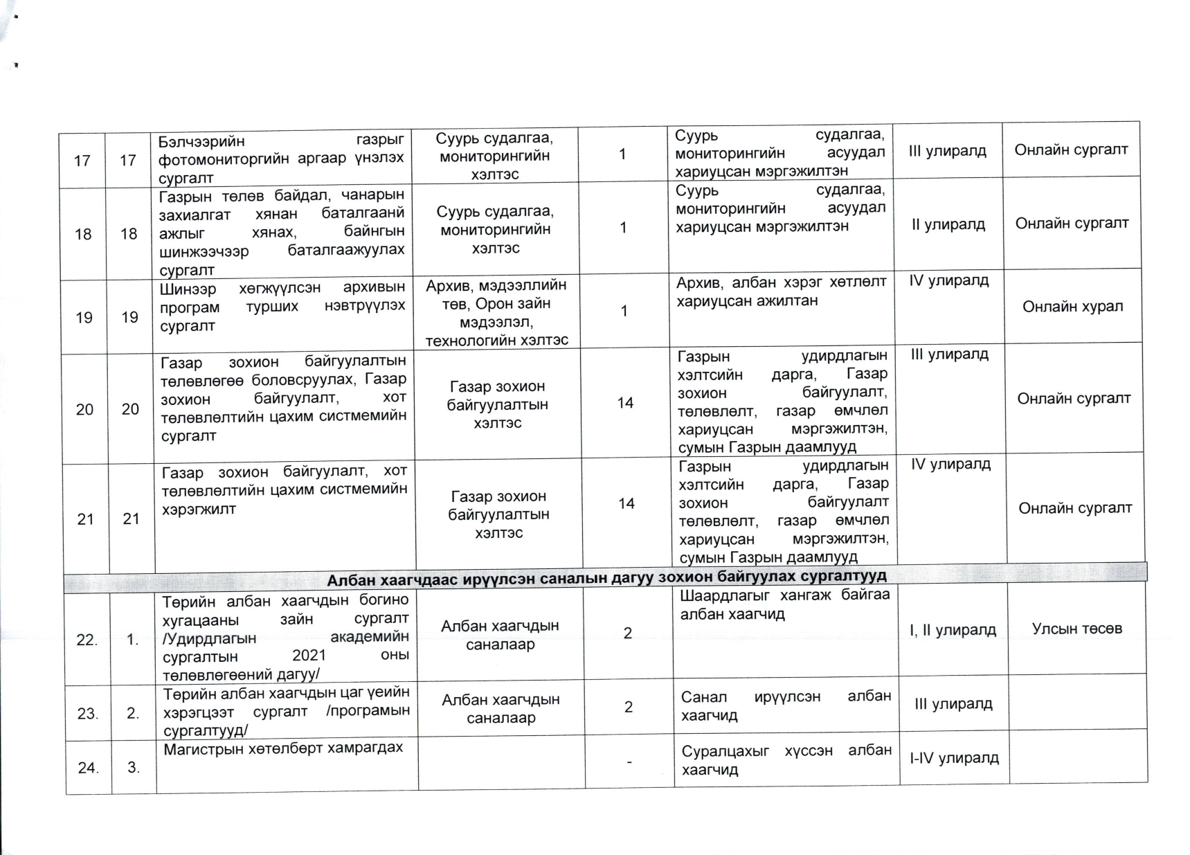 Албан хаагчдын мэдлэг чадварыг дээшлүүлэх 2021 оны сургалтын төлөвлөгөө